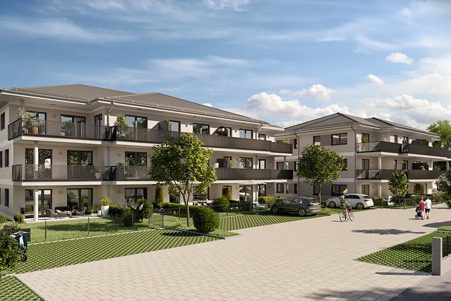 In Lagerlechfeld (Ortsteil Graben) entstehen 24 Wohneinheiten und eine Büroeinheit mit ansprechender Architektur.